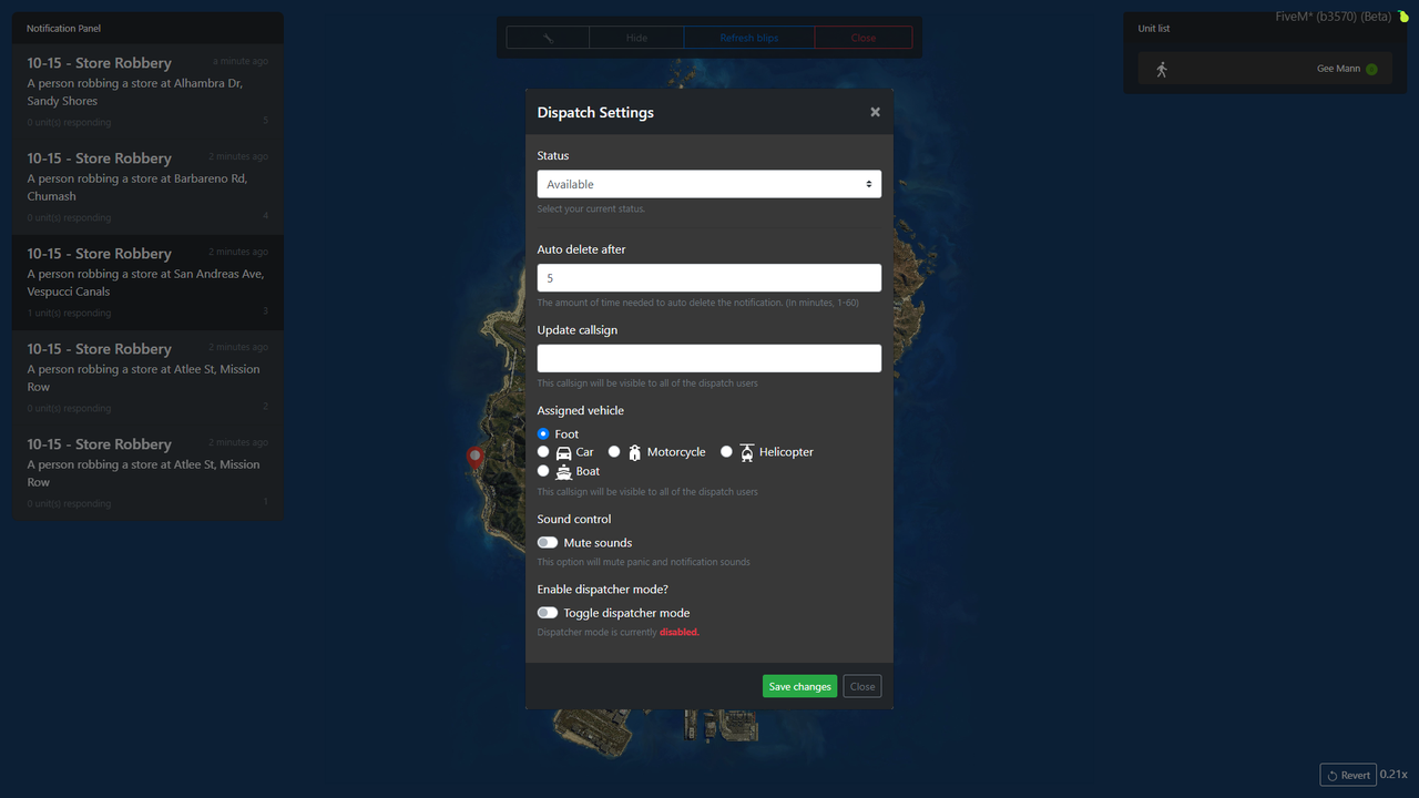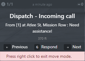 DISPATCHER MODE: When a call is initially received, only the dispatcher can see the call. Dispatchers can enable voice mode while the large UI is enabled to communicate over the radio to other officers to see who is available to take calls (the large ui can stay enabled the whole time and everything will be instantly updated on the UI). Dispatchers then can drag and drop a unit (single unit or grouped unit) onto the call and only that unit will receive the call. If no dispatcher is logged in, the dispatch will function exactly like it currently does in previous versions, where all online officers will receive the calls.
