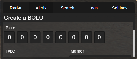 Server Synced Data: When adding/removing a bolo/marker the data is synced between all radar users and will sync after a relog/server restart.