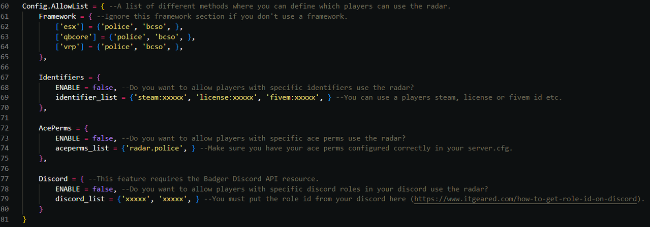 Job/Identifiers/Ace Perms/Discord Roles: When configuring the radars permissions you can choose multiple methods simultaneously - View example here.