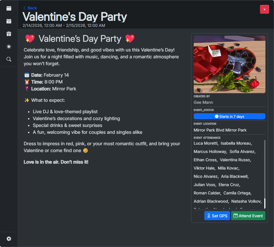 Event Calendar provides a simple way of organizing your events and making them accessible to players.